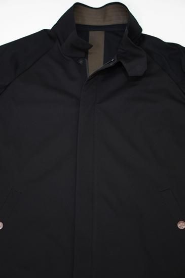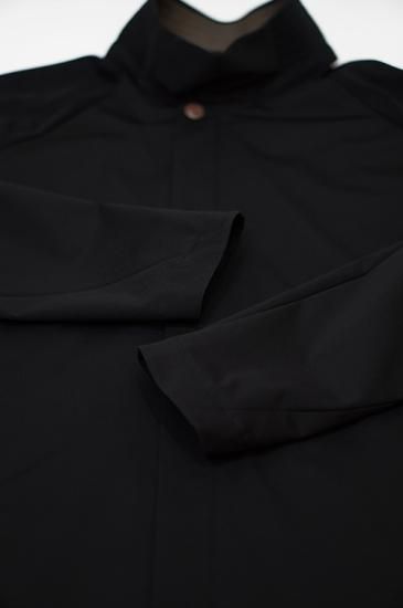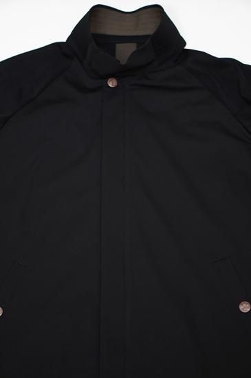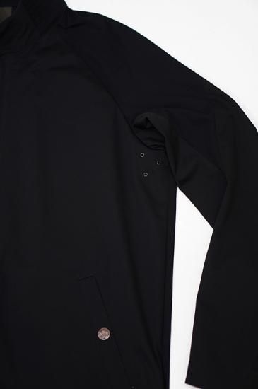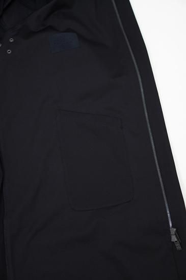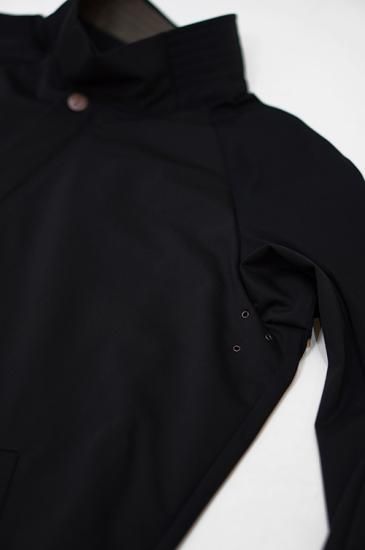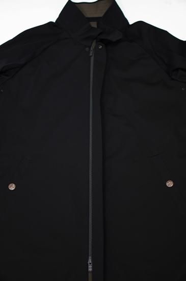 フロントは比翼仕立てのダブルファスナー、ネック部分にはマグネットボタンにより取り付けがスムーズに行えます。ボタンには錆加工を施しています。