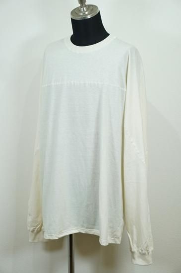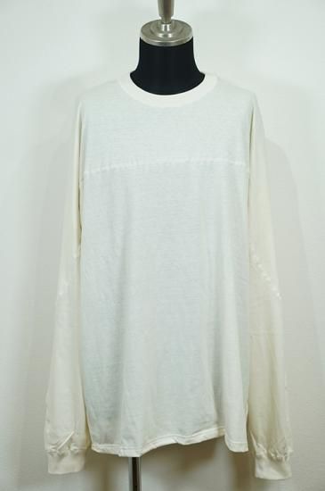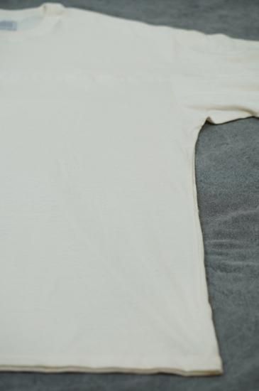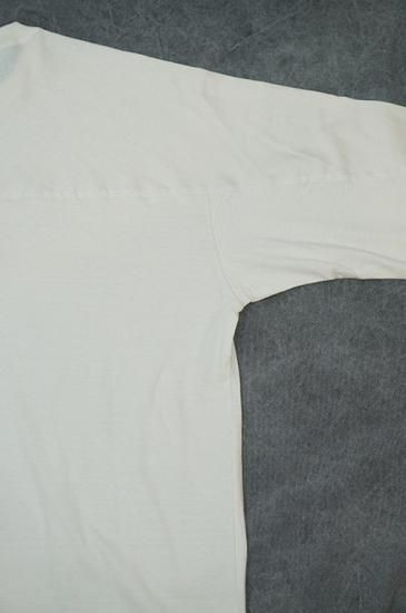 オリジナル天竺にてフットボールロングスリーブTEEを作成。生地は70~80年代のアメリカンカットソーでよく使用された「コットン88%レーヨン12%」の生地でコットンにレーヨン素材を混紡している為非常に滑らかで肌触りの良い素材感になります。