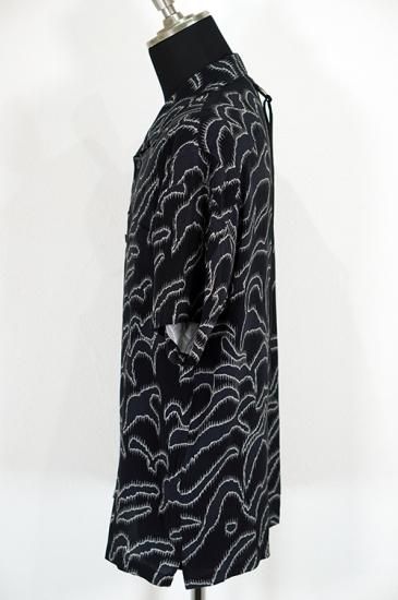細過ぎず、大き過ぎない程良くリラックス感のあるシルエット。サラッと羽織っても、ボタンを止めても様になる、従来よりも着丈を長めに再設定した大人の開襟シャツです。 肩はSTRUM定番の切り返しを入れ、フロント裾にはダーツを入れてアクセントに。胸ポケットは柄を合わせて裁断し、フロントの柄の見え方と機能性を重視。背面は袖の縫製から伸びるようにダーツを入れています。裾両サイドにはスリット入り。