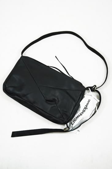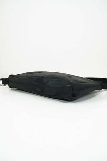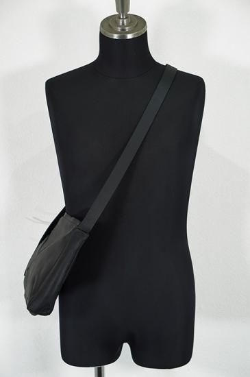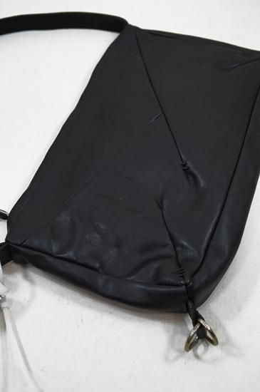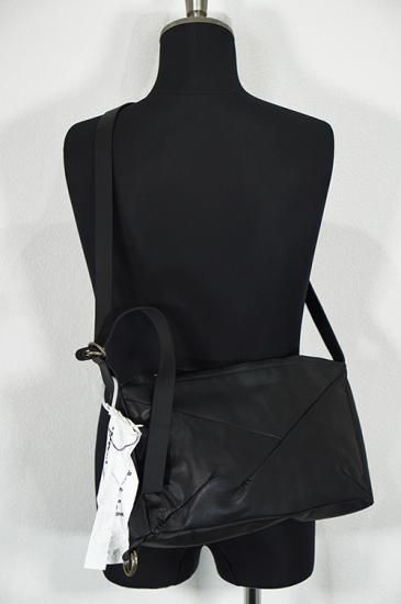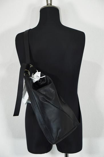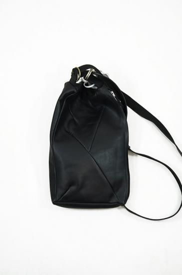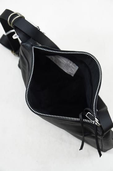 革はプルアップ、ベジタブルタンニンレザーを使い、ショルダーストラップベルトはフルグレインレザーを使用したハンドメイド。ストラップベルトの長さは140cm。Dリングを使う事で形を変える事が可能。レザーとメタルパーツとの組み合わせによりインダストリアルな雰囲気を表現。