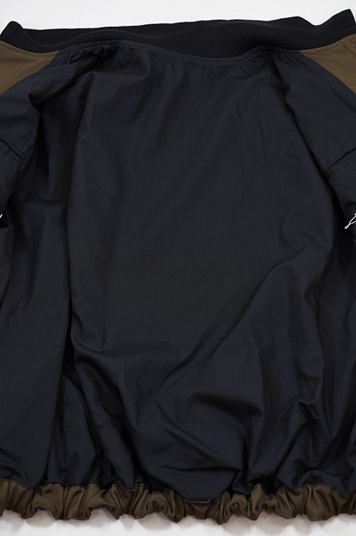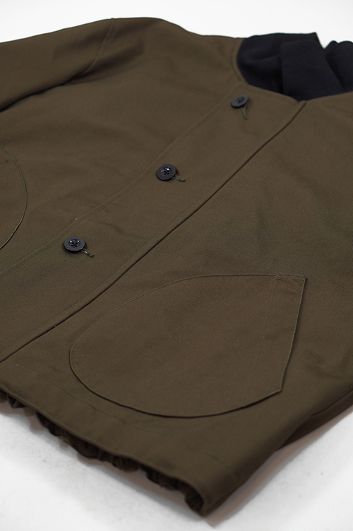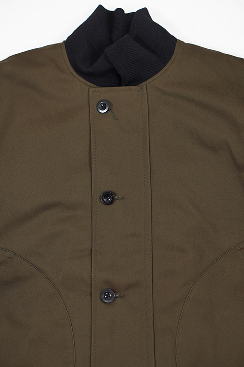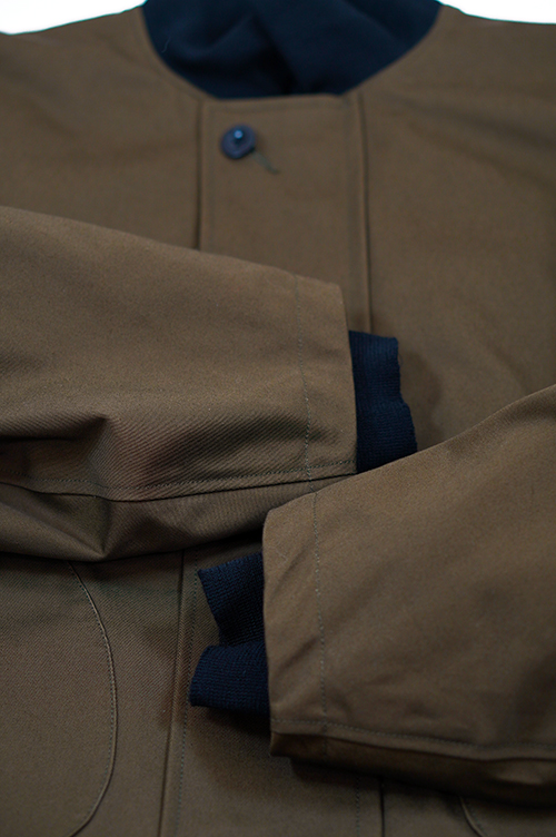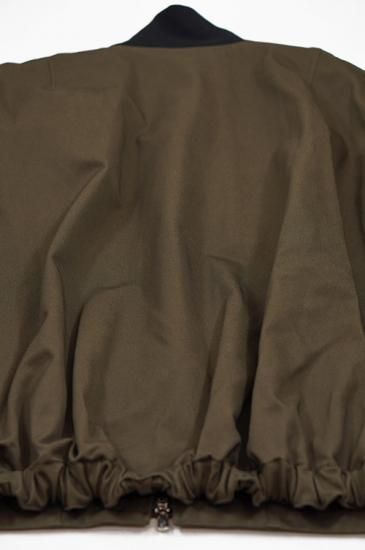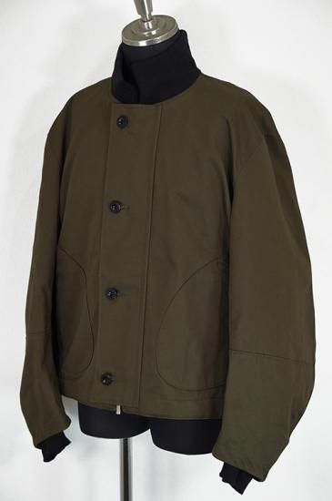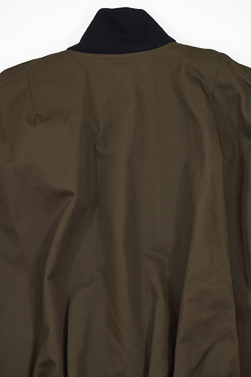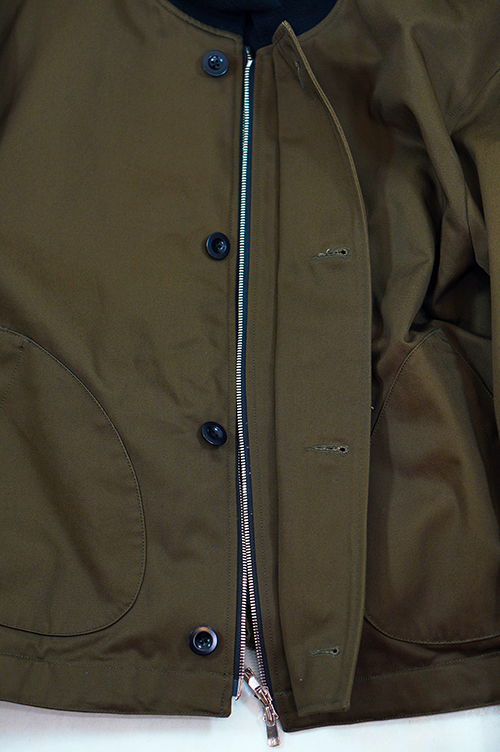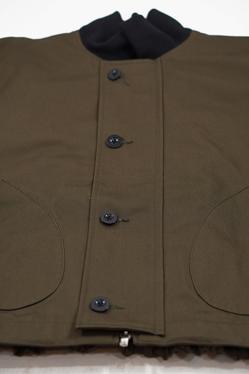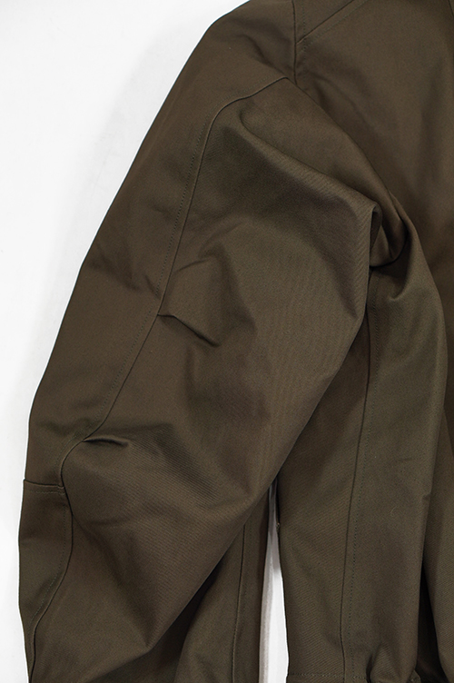 ハギがない一枚生地背中にたっぷりとギャザーを寄せ、アームにタックを入れる事で丸みがあるシルエットを作成したN-1デッキジャケット。ガーメントウォッシュで仕上げています。ファスナーはYKKの最高峰EXCELLAEを使用。