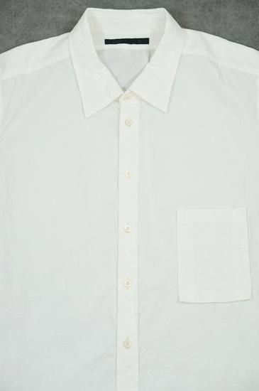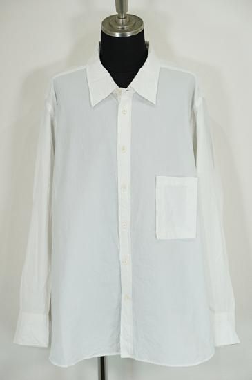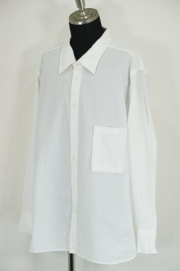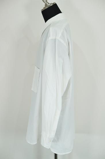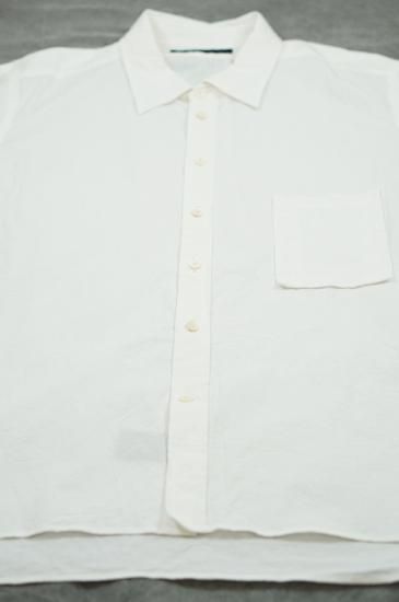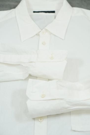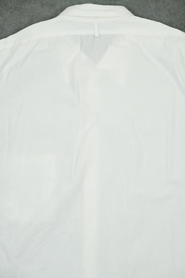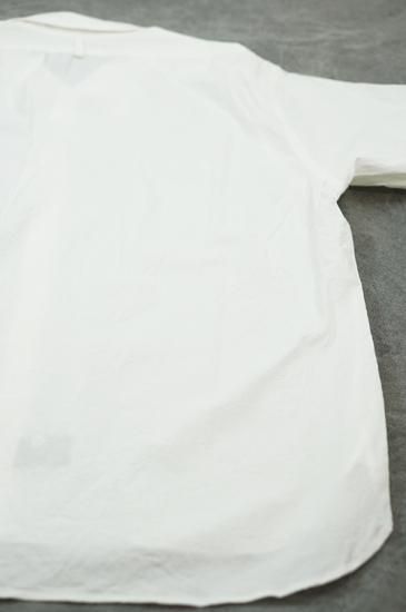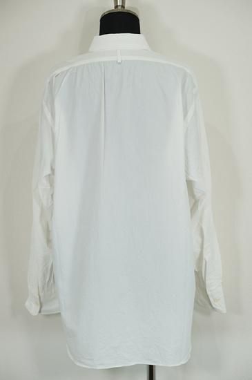 レギュラーフィットのサイズパターンに大きめの襟。レディースボディにメンズのクラシックシャツを合わせたような印象。ガーメントウォッシュで仕上げています。ボタンはシェルボタンを使用。
