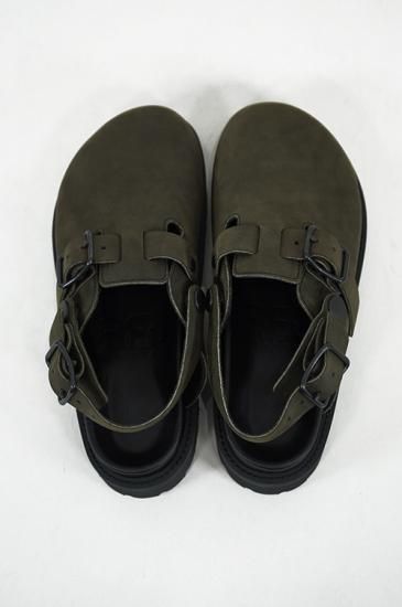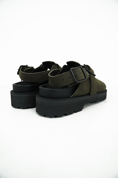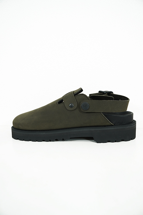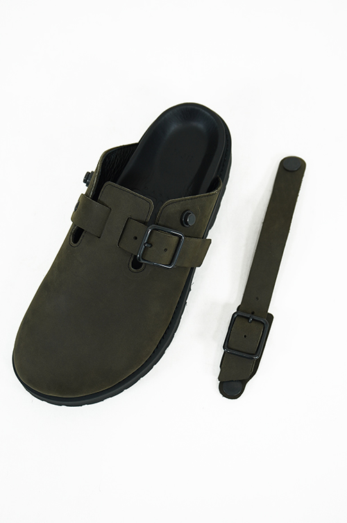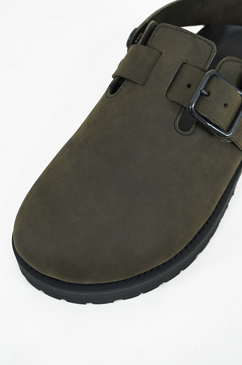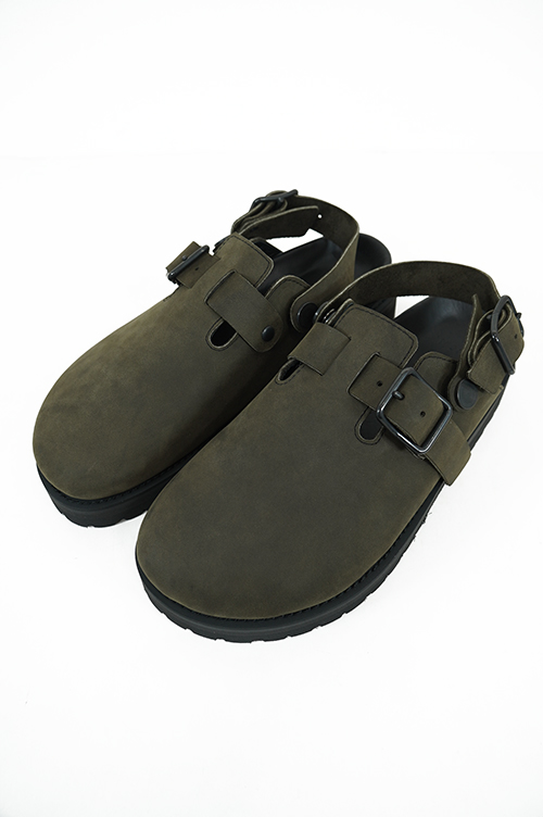 オールシーズンで使いやすいクロッグタイプのサンダル。足指が見えないのでオールシーズンで使いやすく、ソックスとの相性も良いクロッグタイプ。ソールはVIBRAM社の耐摩耗性に優れたソール。