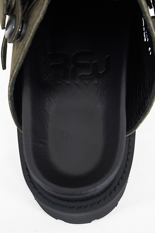 RFWとのコラボレーション。革はアメリカホーウィン社のヌバックレザーを使用。革に蜜蝋、油脂成分がたっぷり含まれている為、このグレー色が特に革の経年変化を楽しめます。