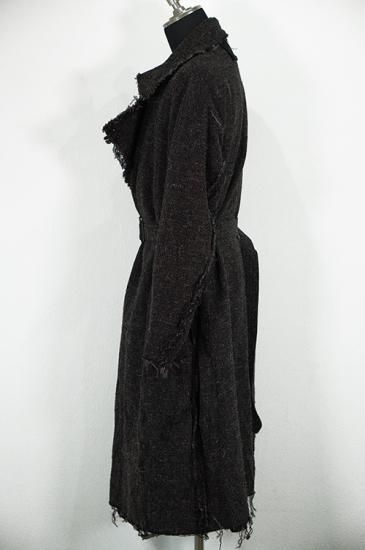 昔のフランス軍のメディカルコートをベースに作成。ボックス型でワイドなフォルムとベルトによるシェイプでモダンな雰囲気を醸し出します。 裾はカットオフ仕様。
