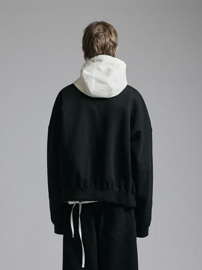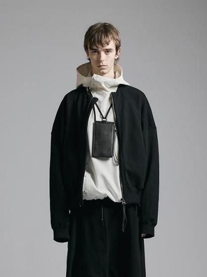 高密度のヘビースウェットのジップアップブルゾン。ドロップショルダー、着丈は短め。前身のポケットはシーム状に配置。