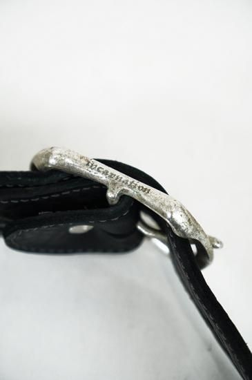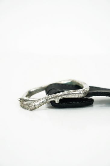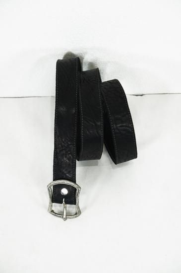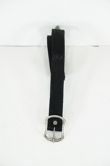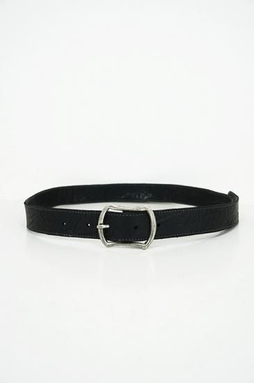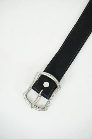 角を出した変形オーバルバックルのベルト。バックルにも加工を施しています。