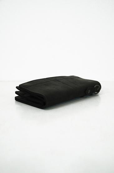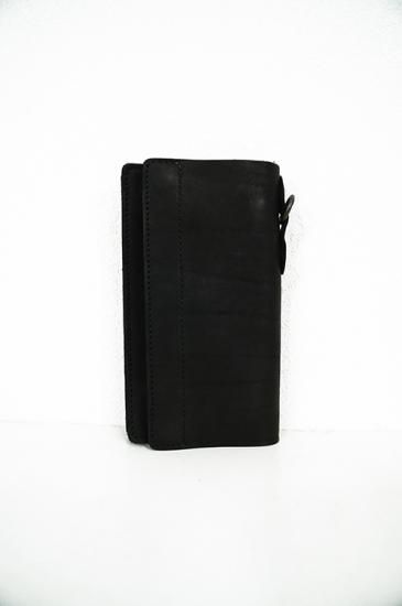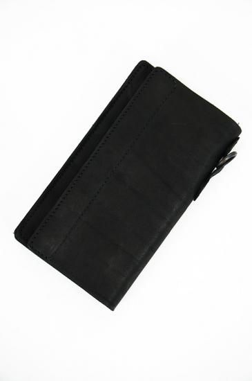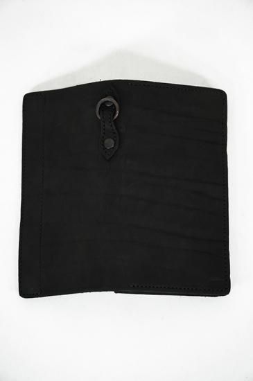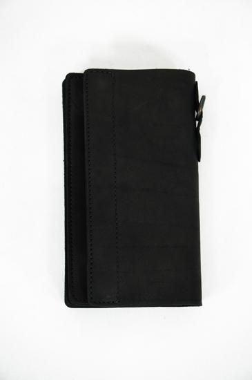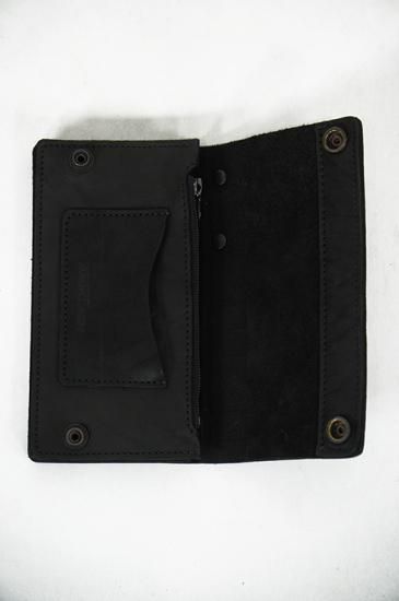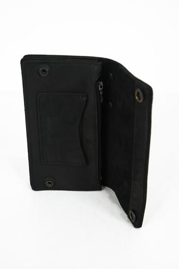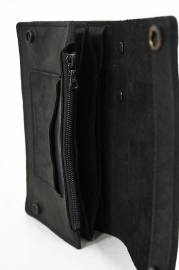 BACKLASHを代表するダブルショルダーに製品染めを施したトラッカーウォレット。