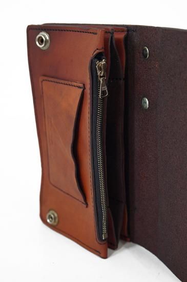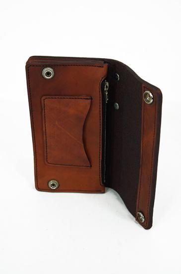 BACKLASH ダブルショルダーレザー製品染めトラッカーウォレットスモール