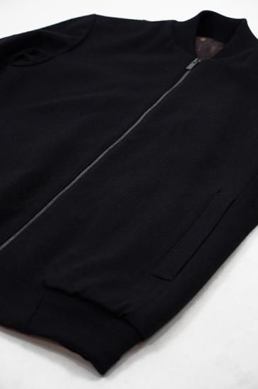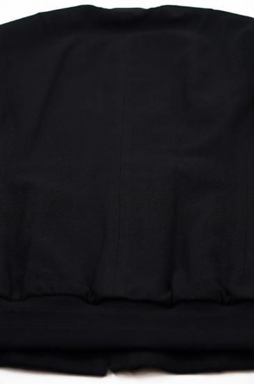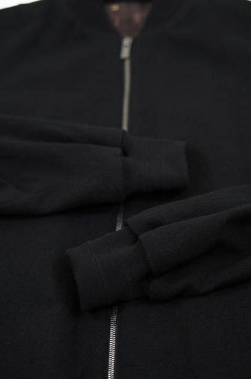 デザインはシガレットポケットを排したボンバージャケット。全体的にコンパクトなサイズ感に仕上げています。衿、袖、裾を伸縮性に優れたニット地で切り替え、肘にダーツを入れ動きやすい立体的な仕様にしています。