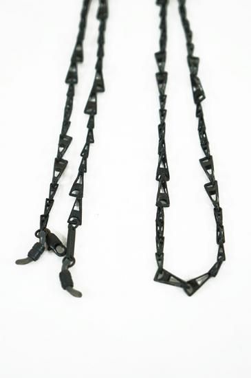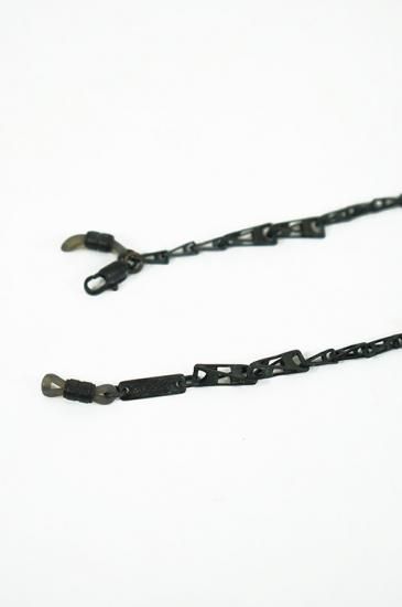 チェーン先に付いたゴム留め具に眼鏡テンプルを通す事で簡単にファッション性と実用性を兼ね備えたアイウェアチェーン。ハンドメイドでの作成です。