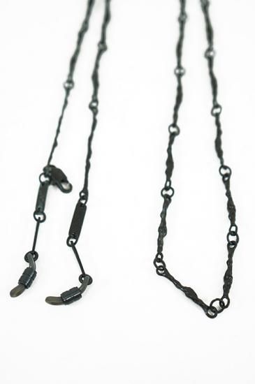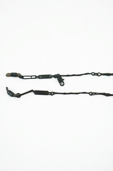 ZIGGY CHEN(ジギーチェン)とのコラボモデル。チェーン先に付いたゴム留め具に眼鏡テンプルを通す事で簡単にファッション性と実用性を兼ね備えたアイウェアチェーン。ハンドメイドでの作成です。