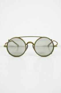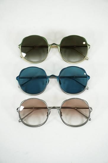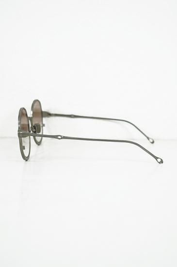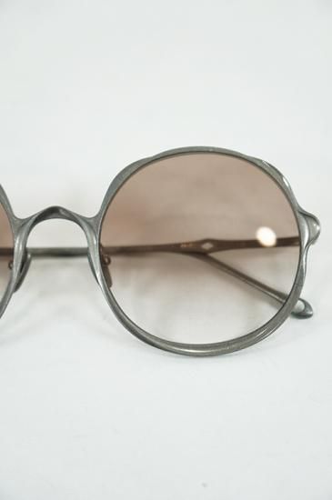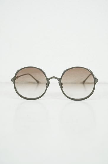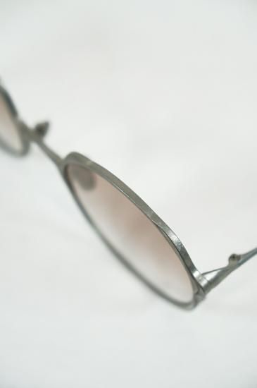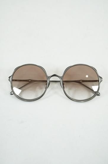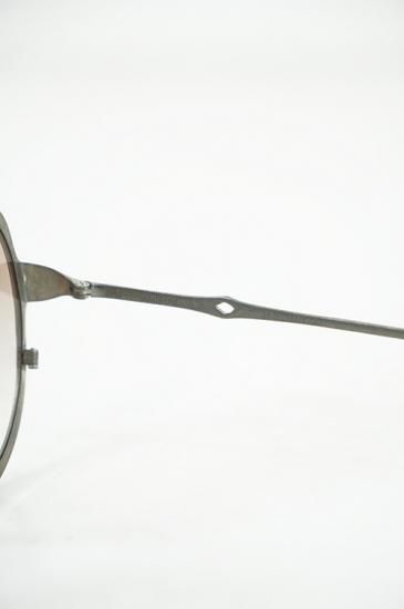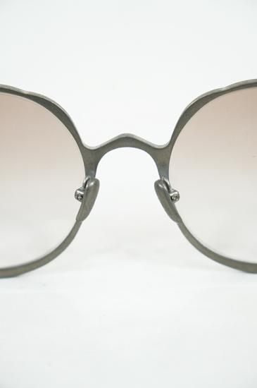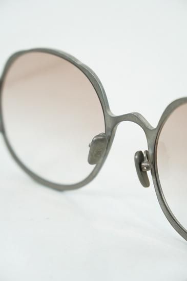 レンズの入れ替えは可能です。フレームはチタン素材の大きいサイズのラウンド型。存在感があるサングラス。レンズはグラデーションがかかっています。ヴィンテージ加工を施したマットなフレームの質感が特徴。ノーズパットにはRIGARDSのブランドロゴ刻印。軽く顔にフィットする掛け心地です。