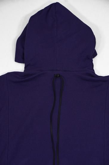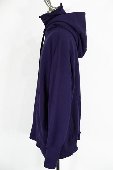 ワイドなサイズ感でフードの内部にハイネックウォーマーを仕込み、フードをかぶった際にマスクのようなアウトルックになるようにパターンを構成。