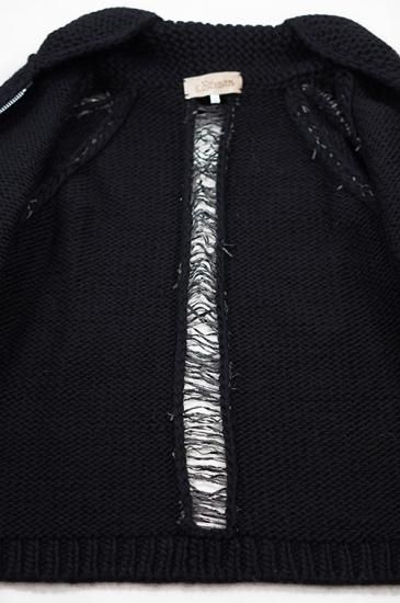 機械では編めない高品質でサスティナブルな糸を使用し職人の手作業で編まれています。職人達のスキルと創造性を発揮する機会、可能性を与え、突発的、流動的なデザインにする為、あえて製図を起こさない編み方は生産プロセスに100時間以上かかりインカネーションのコレクションと同様に1着1着が唯一無二の物作りになっています。