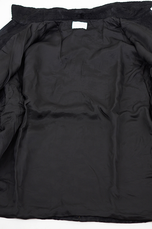 襟付きのジップアップジャケット、サイドポケットを配置、裏地のみ新品のキュプラを使っています。