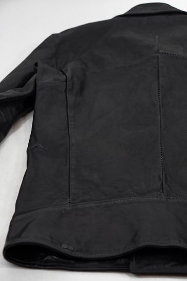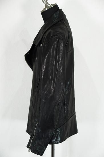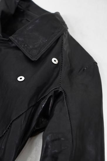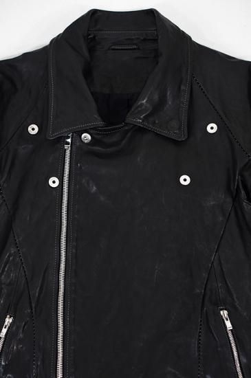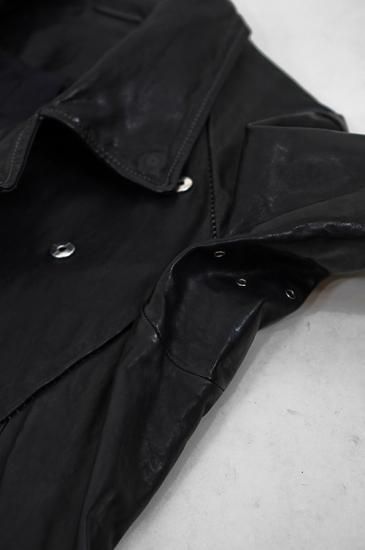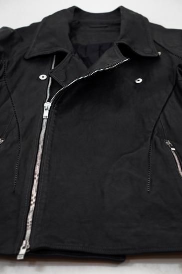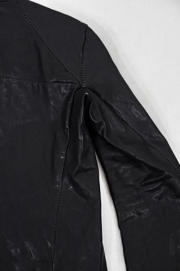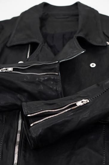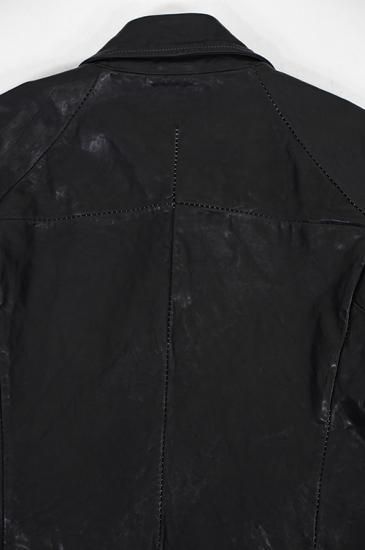 全ての皮革はベジタブルタンニンによって鞣しています。ベジタブルタンニンは革特有の色の変化、また艶の上がり具合がクローム鞣しとは格段に違います。通常硬くなるため衣料品には不向きですが、手間をかけた工程により、クローム鞣しと遜色ない程に柔らかく、しなやかに上がっております。