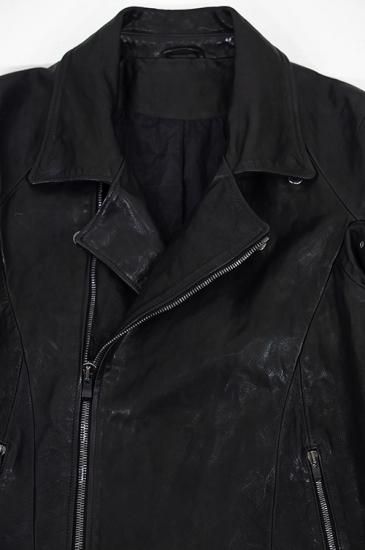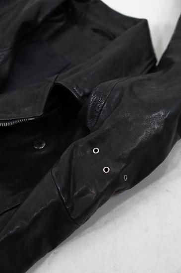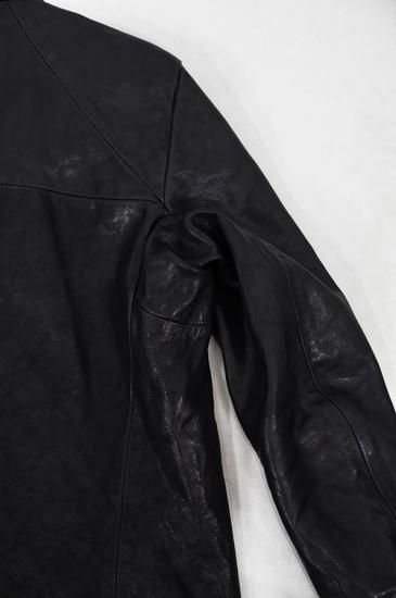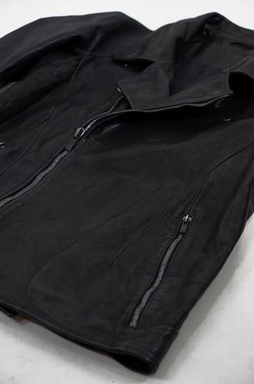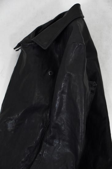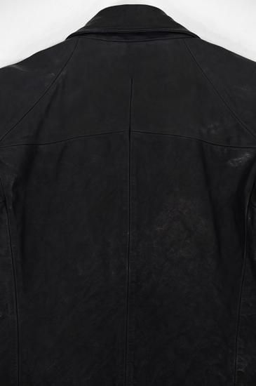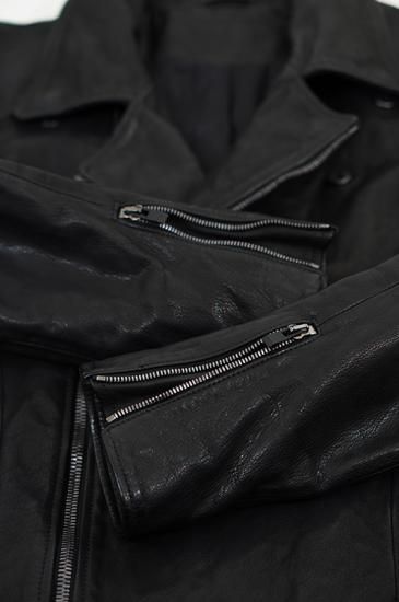 全ての皮革はベジタブルタンニンによって鞣しています。ベジタブルタンニンは革特有の色の変化、また艶の上がり具合がクローム鞣しとは格段に違います。通常硬くなるため衣料品には不向きですが、手間をかけた工程により、クローム鞣しと遜色ない程に柔らかく、しなやかに上がっております。