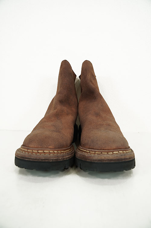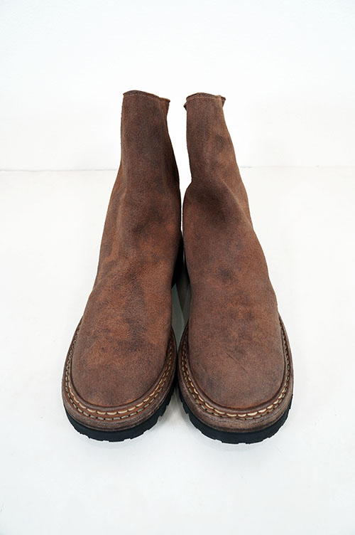 アンクル丈のバックジップショートブーツにソールはVibram社のタンクソール。