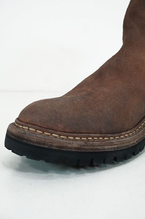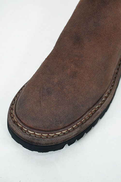 新品の状態から柔らかくしなやかで足に吸い付く感覚があり、履き込む程にシワの入りなど履く方のクセが顕著に現れる経年変化が魅力です。