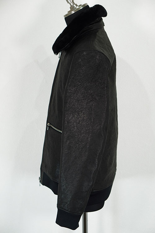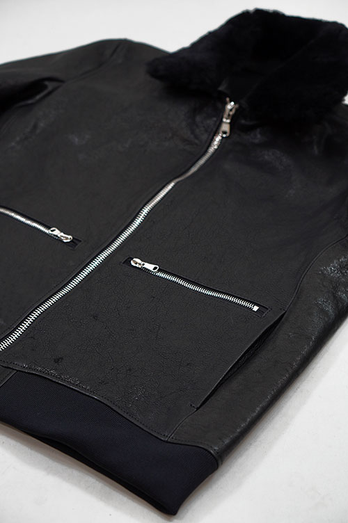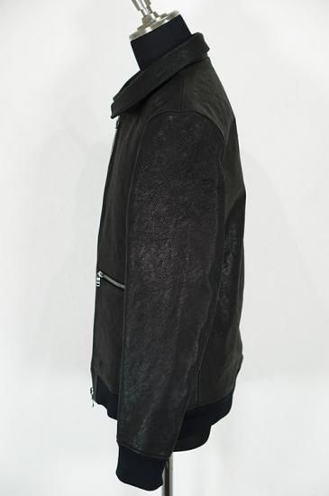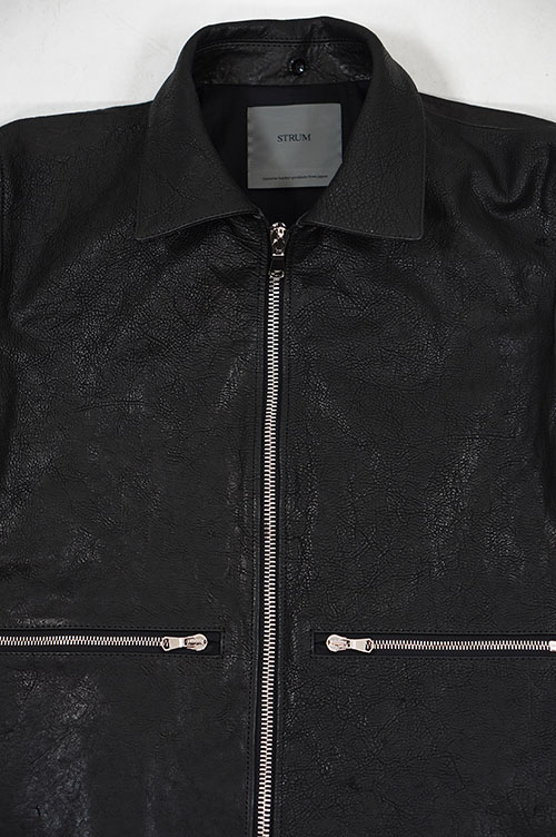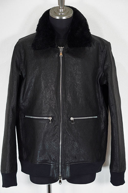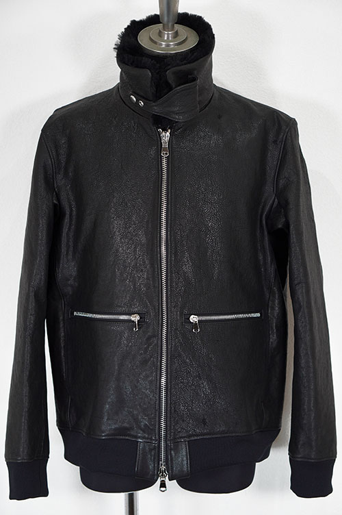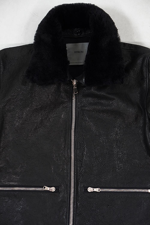 STRUM フルタンニンピット鞣しシュリンクホースハイド&スペインメリノリブブルゾン