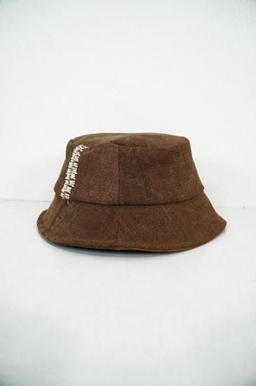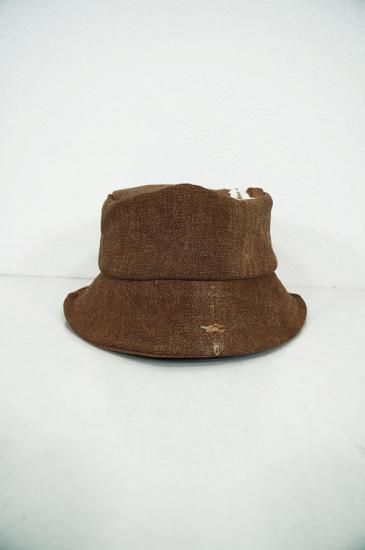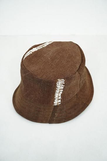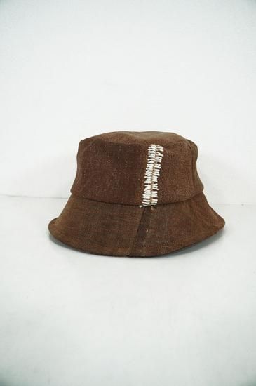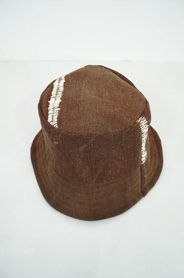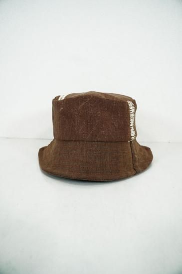 ベース素材の酒袋は200年前後前の希少性がかなり高い素材を用い制作。ミシンがない時代のマムシ縫いという手作業でのリペアを施されているのも特徴。それを柿渋染めで染め上げています。