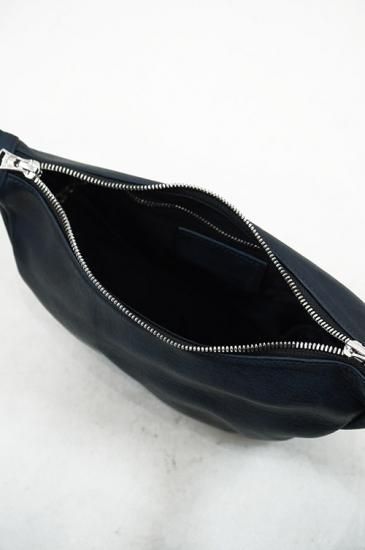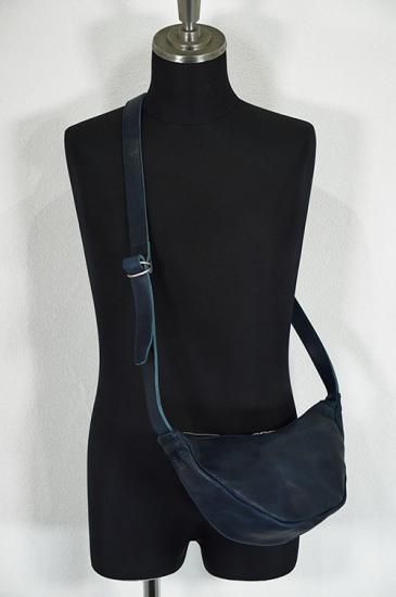 ブランドを代表する通称バナナバッグの小型タイプ。男性の休日スタイルに、ポケットプラスアルファ感覚で軽く持てるミニショルダーバッグ。敢えてミニマルなデザインで構築しつつ、マチのある点がポイント、収納量や物の出し入れに便利です。内側にファスナー付きのポケットを配置。全面に裏地も配備されています。リングベルト仕様でストラップの長さ調整が細かく自在に行えます。ストラップ幅2.5cmになります。ファスナーにはYKK社製高級タイプのEXCELLA(エクセラ)を採用、引手には実用性を考慮したブランドオリジナルデザイン。